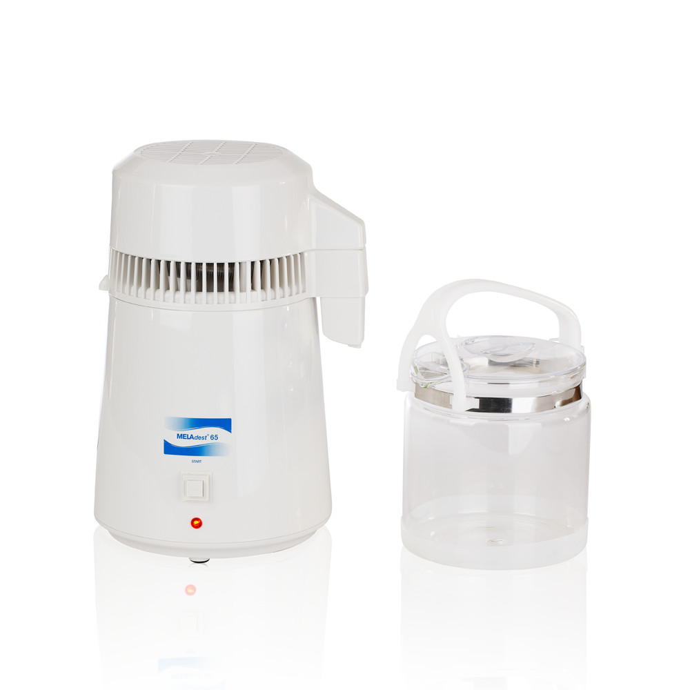 Este destilador de agua práctico produce agua de la mejor calidad de conformidad con lo que representa uno de los más antiguos métodos de tratamiento del agua. Cuando se activa el equipo, aumenta la temperatura del agua, esta empieza a hervir, el vapor que produce es conducido a través de la apertura. Con el aumento de la temperatura a 100 ºC el agua comienza a hervir. Durante la evaporación, los productos químicos, sales y suciedad permanecen en el contenedor. La corriente fluye a través del sistema de serpentín de refrigeración en la sección superior donde se enfría y se condensa en agua destilada.
