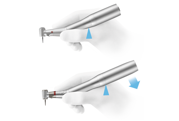 El conjunto de micromotor MX2 y contra-ángulo Micro-Series no es más grande que una turbina. Gracias a un tamaño reducido al máximo y a un equilibrio perfecto, se reducen de forma notable los esfuerzos necesarios para sujetar el instrumento en la mano. Ello se traduce en movimientos más precisos y menor cansancio al acabar la jornada