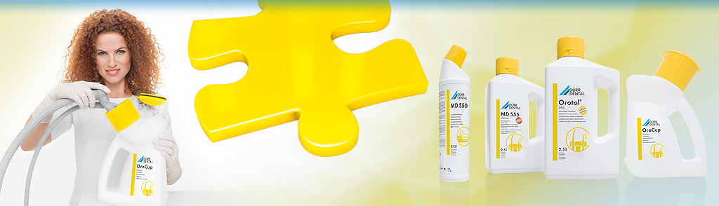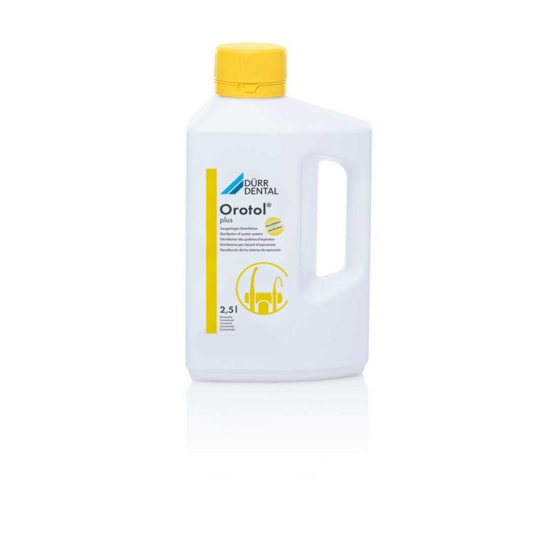 Desinfección de sistemas de aspiración Orotol® plus Concentrado líquido sin espuma para la desinfección, desodorización, limpieza y mantenimiento simultáneos de todos los sistemas de aspiración y separadores de amalgama. Bactericida, levurocida, virucida limitado y virus sin envoltura (adenovirus, norovirus) Elimina, desinfecta el biofilm y previene la obstrucción por sangre y proteínas La solución para sistemas de aspiración contaminados que garantiza una protección segura contra infecciones Compatibilidad del material comprobada – recomendado por los principales fabricantes Sustancia activa: QAV Disponible en botella de: 1 l, 2,5 l Nuestra recomendación: OroCup, MD 555 cleaner, MD 550