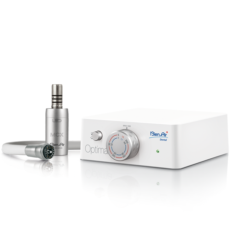 Desde su práctico diseño hasta su configuración y su funcionamiento sin interrupciones, compuesto por una unidad de mando de mesa y el micromotor de inducción el MCX, este ingenioso sistema ofrece a los profesionales de la odontología la posibilidad de actualizar sus equipos con la tecnología eléctrica más reciente. El sistema Óptima es la solución original de Bien-Air para hacer que las cosas le funcionen.