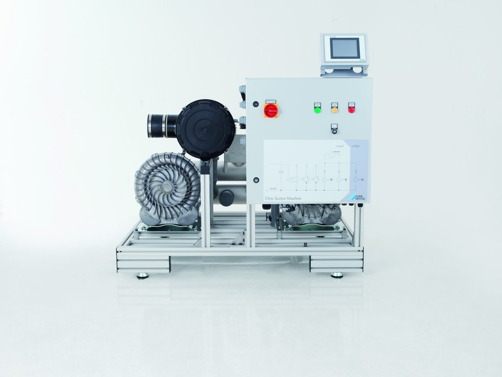 Grupos con 2 máquinas de aspiración incluida la caja de mando con control de la depresión y filtro de bacterias, vigilancia a distancia posible.